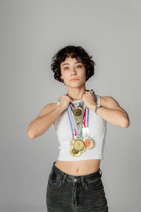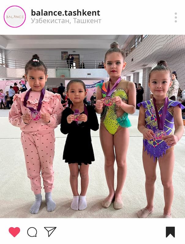КМС по художественной гимнастике, чемпионка Республики Узбекистан, многократная чемпионка города, призер турнира Алины Кабаевой.
